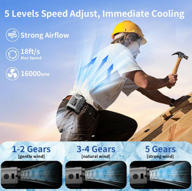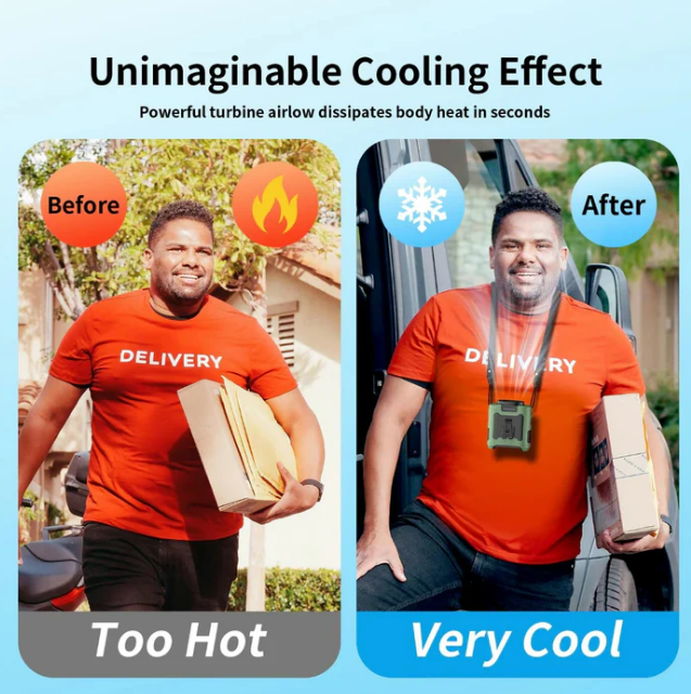 The PowerBreeze™ Travel Fan features a lightweight and compact design that can be worn on the waist, clipped onto clothing, on hung from your neck as a lanyard. This portability allows you to carry it effortlessly during outdoor activities, commuting, or traveling, ensuring you always have access to a cooling breeze wherever you go.